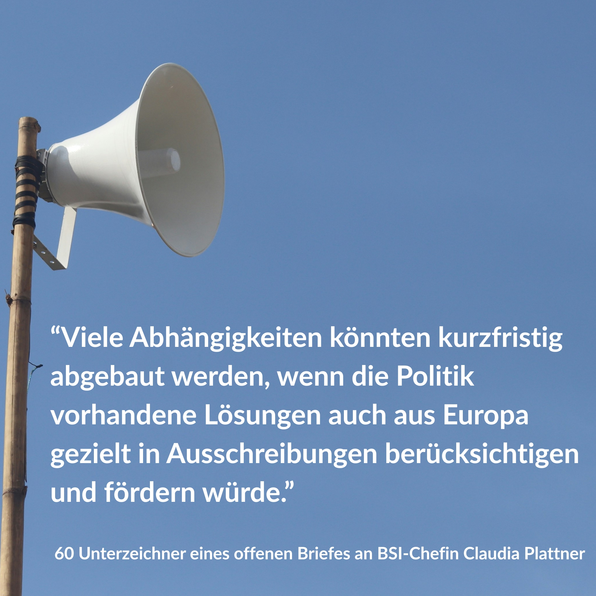 wir nehmen Bezug auf Ihre Aussagen gegenüber der dpa, die in vielen Medien veröffentlicht wurden. Ihre Beschreibung des Ist-Zustands ist in Teilen korrekt: Deutschland ist in zentralen Feldern von US-Anbietern abhängig und kurzfristig ist selbstverständlich mehr Kontrolle und Risikobegrenzung notwendig. Aber: Digitale Souveränität ist erreichbar und die Voraussetzung für unsere Sicherheit, wirtschaftliche Stärke und die eigenständige Gestaltung unserer Zukunft. Wenn wir uns ständig allein mit Schadensbegrenzung abmühen, kommen wir aus der misslichen Lage der erdrückenden Abhängigkeiten nicht heraus.