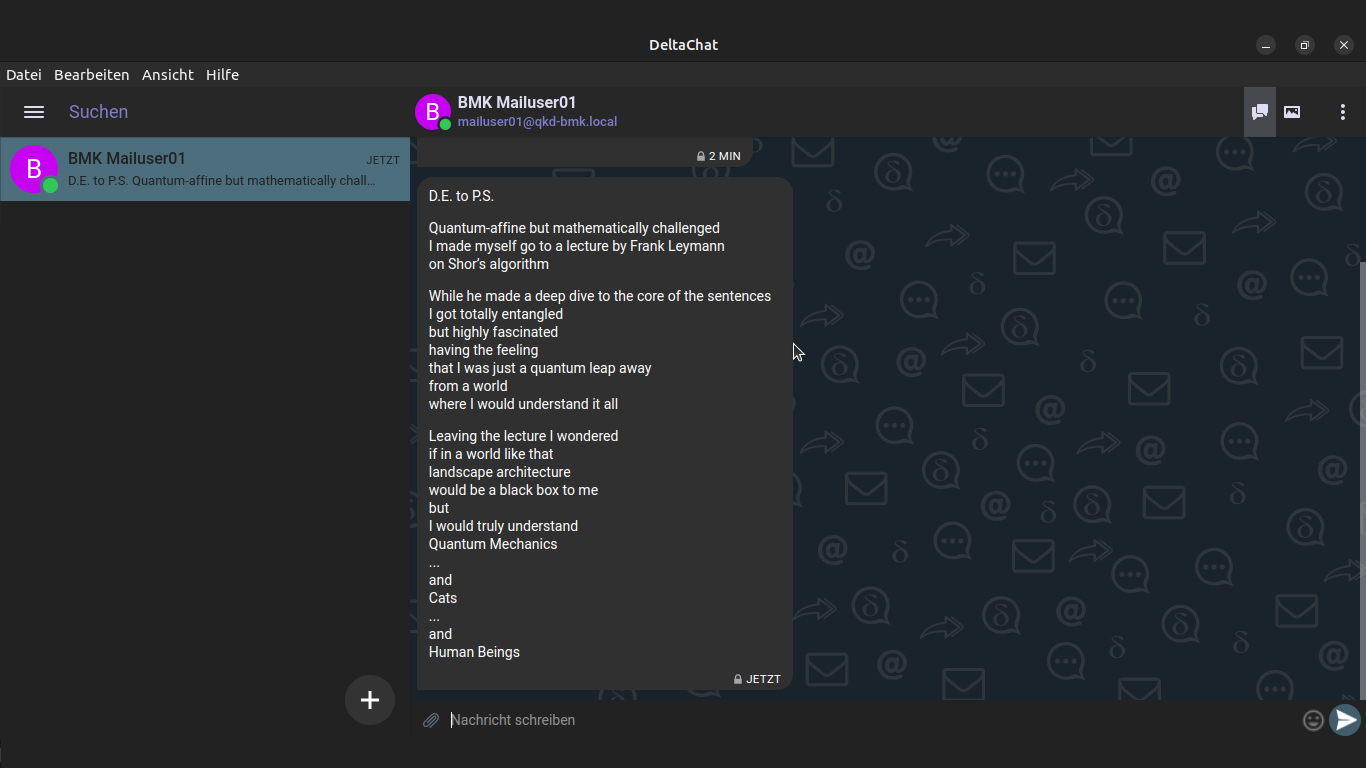 quantenverschluesselte Chatnachricht von einem AIT Account mit Nachricht vom BMK