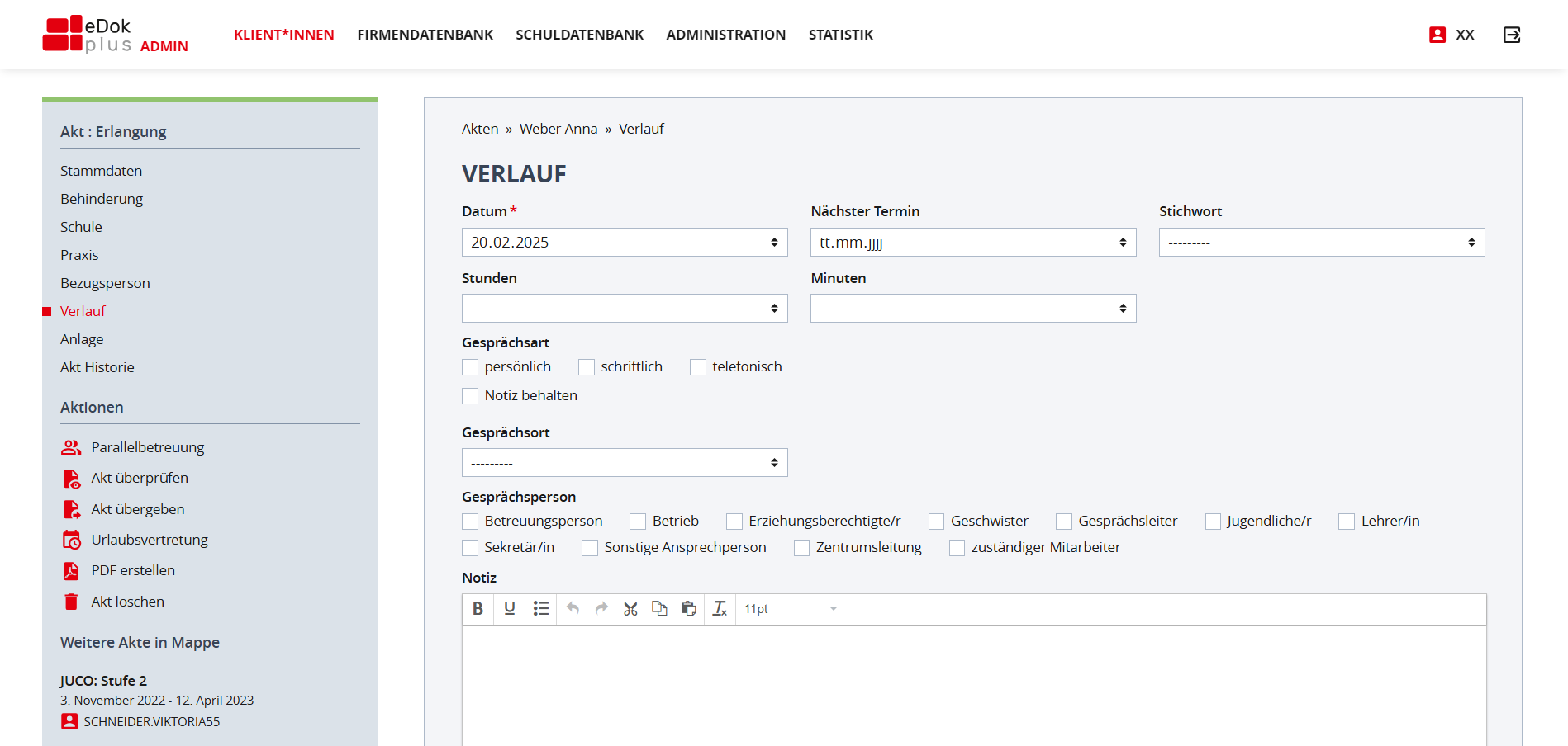 Einhaltung von Sicherheitsbestimmungen | Sämtliche erfassten Daten sind elektronisch archiviert. Das Hosting erfolgt in österreichischen Rechenzentren unter Einhaltung sicherheitsrelevanter Vorgaben und Bestimmungen (vgl. DSGVO, NIS-2). Die Archivierung von Handakten ist nicht mehr erforderlich. |