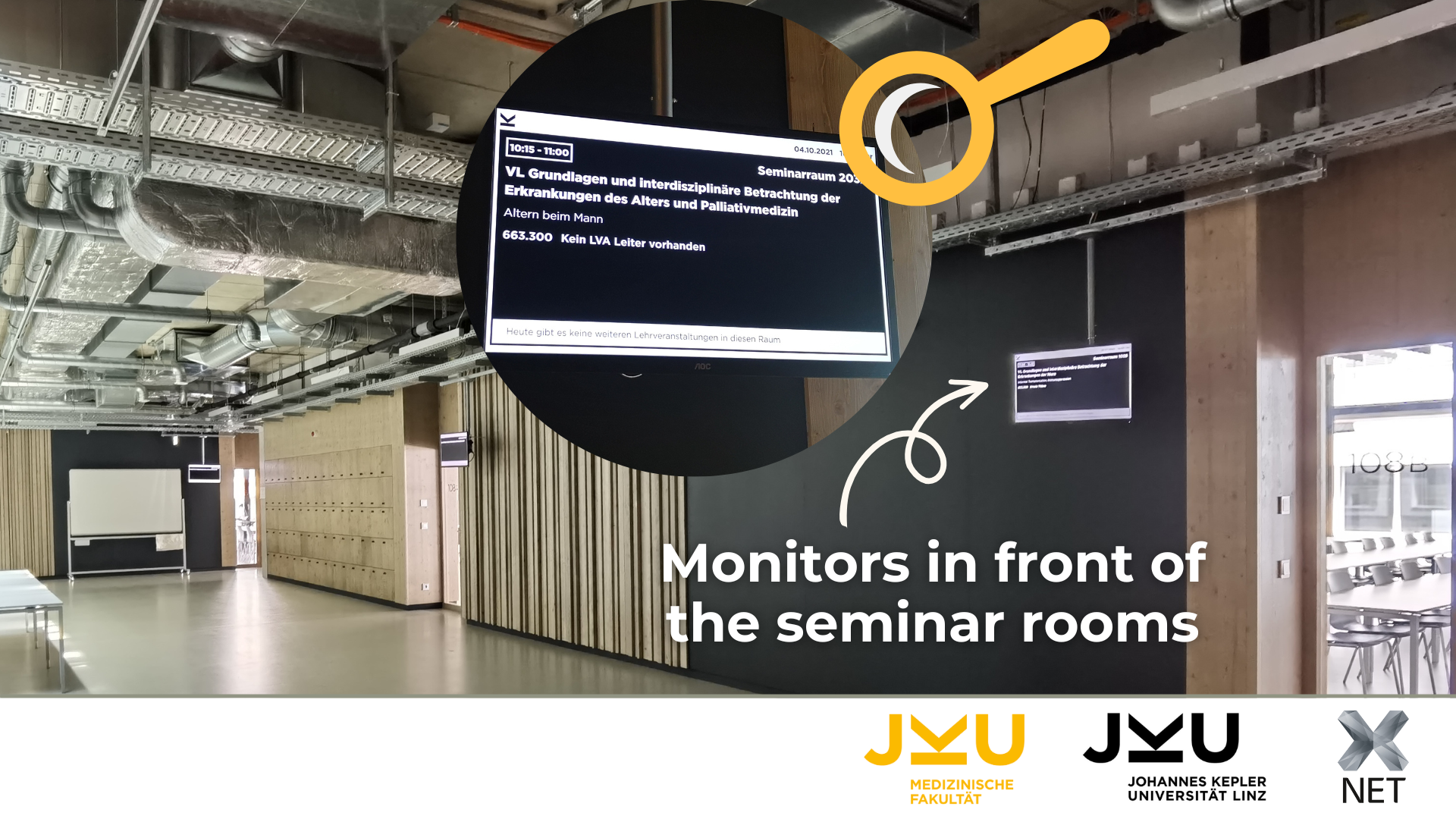 The benefit lies in the transparent and clear recording of attendance: this takes place when entering the room in which the course is held, on the display of the indoor unit 15 minutes before the start of the course at the earliest. Attendance can be recorded using a smartphone in combination with myJKU web application or the JKU Card. Students can immediately see and hear whether the registration was successful or an error occurred. Students can use the web portal to view their courses and schedules, check attendance, report absences, and submit substitute work for missed courses.